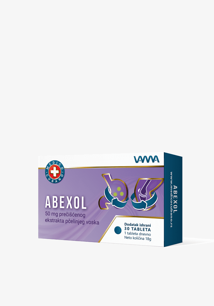 ABEXOL se već 20 godina upotrebljava na Kubi. ABEXOL je dodatak ishrani koji se preporučuje kod svih gastrointestinalnih problema, masne jetre, artroze. ABEXOL ima antioksidativna svojstva i štiti cjelokupno gastroenterološko područje.