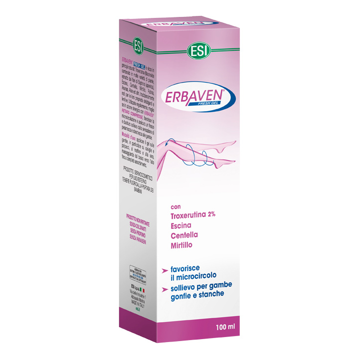 ESI Erbaven fresh gel je proizvod za masažu i njegu umornih i otežalih nogu, osobito prikladan kod otežane venske cirkulacije. Sastojci gela učinkovito djeluju na ublažavanje boli i pečenja u nogama koji nastaju kao posljedica dugotrajnog stajanja ili sjedenja, velikih tjelesnih napora ili godišnjeg doba s visokim temperaturama zraka.