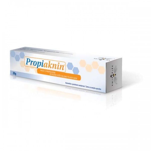 Propiaknin ® mast s propolisom preporučujemo – kada se na koži lica ili tijela pojave akne (Acne vulgaris) – kada su akne upaljene, neotvorene i bolne – kod iritirane i problematične mladenačke kože na kojoj su akne i miteseri – za ublažavanje posljedica uboda morskih ježinaca.